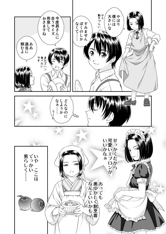 (新次郎が)昴さんのエプロン(姿をあれこれ妄想する)漫画(2P)
